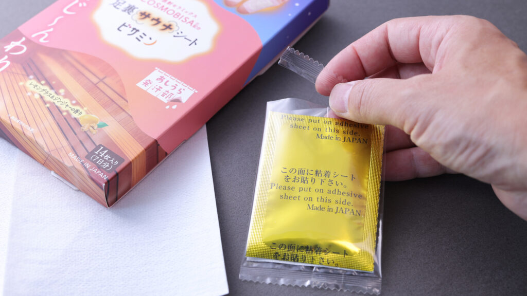 足裏シートは、貼って寝ると、朝にすっきりとしたり、寝るときに足がポカポカになる効果があります。