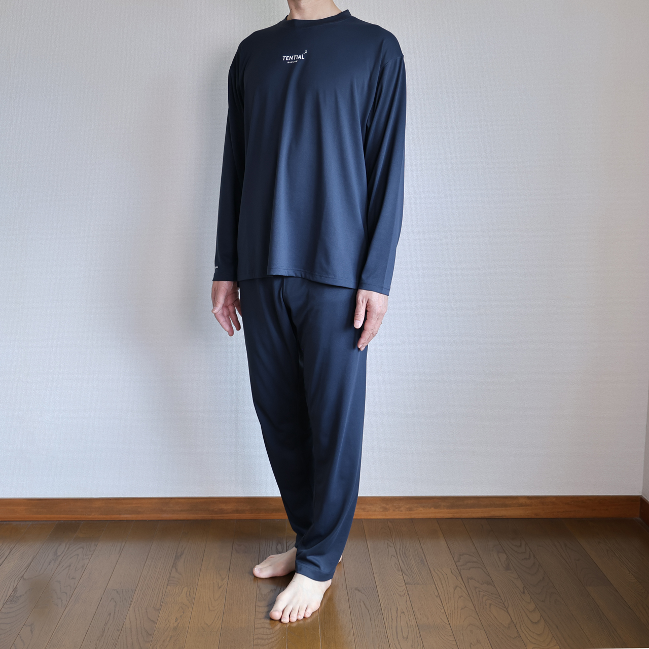 着用写真のように、トップスはTシャツ、ボトムは、スパッツとなります。